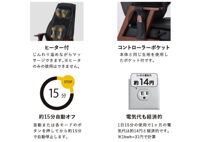 ■ヒーター付・・・じんわり温めながらマッサージできます。※ヒーターのみの使用はできません。■コントローラーポケット・・・本体と同じ生地を使用したポケット付きです。