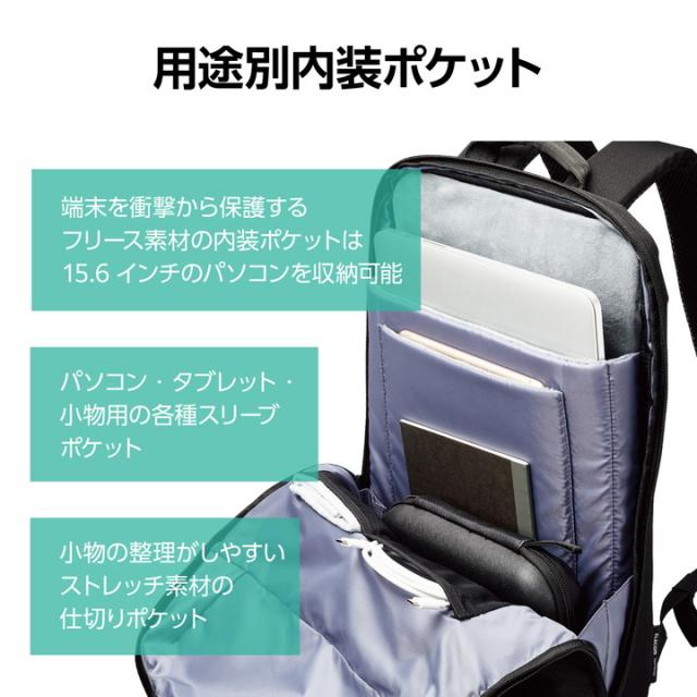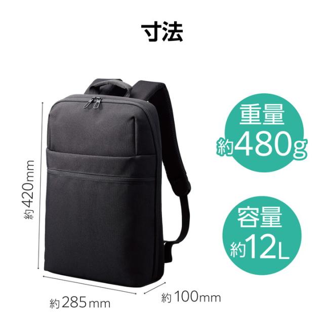 エレコム ビジネスバックパック 15.6inch 対応 薄型タイプ 12L ブラック┃BM-BPTHBK