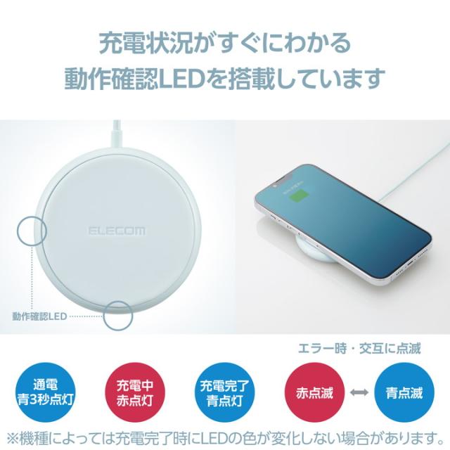 エレコム Qi規格対応 ワイヤレス 充電器 ケーブル一体型 5W 卓上 ブルー┃W-QA25BU