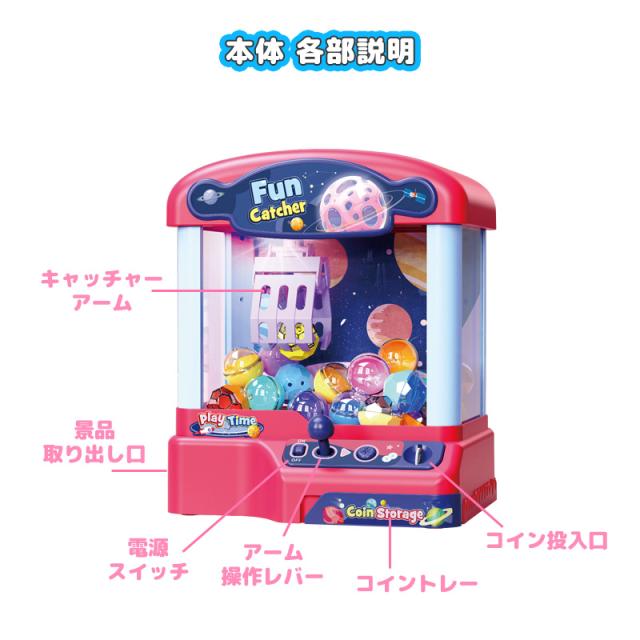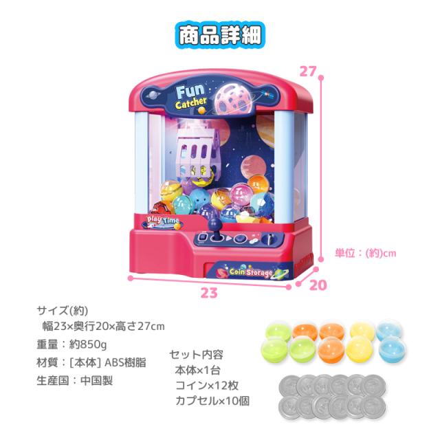 クレーンゲーム ミニサイズ 家庭用 おもちゃ キャッチャー 子供 キッズ トイ カプセル アーケード ゲーム タイマー ライト コイン 翌日配送