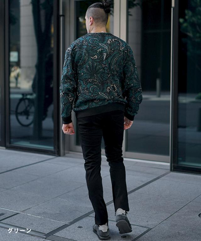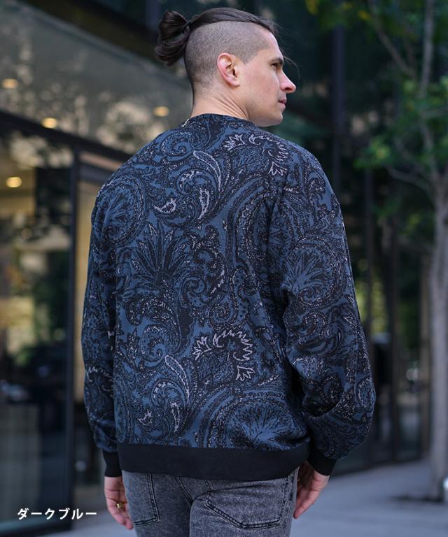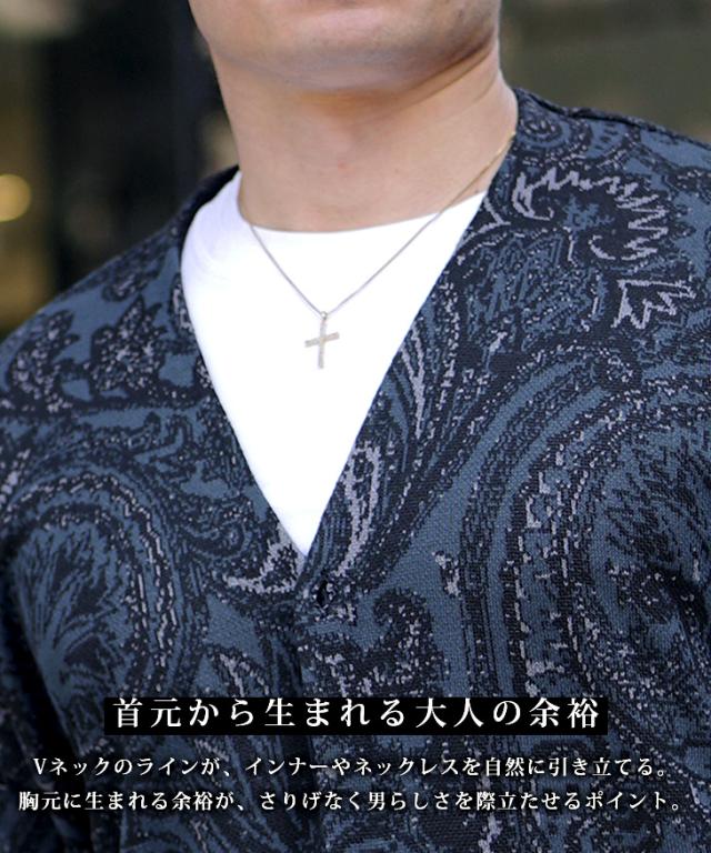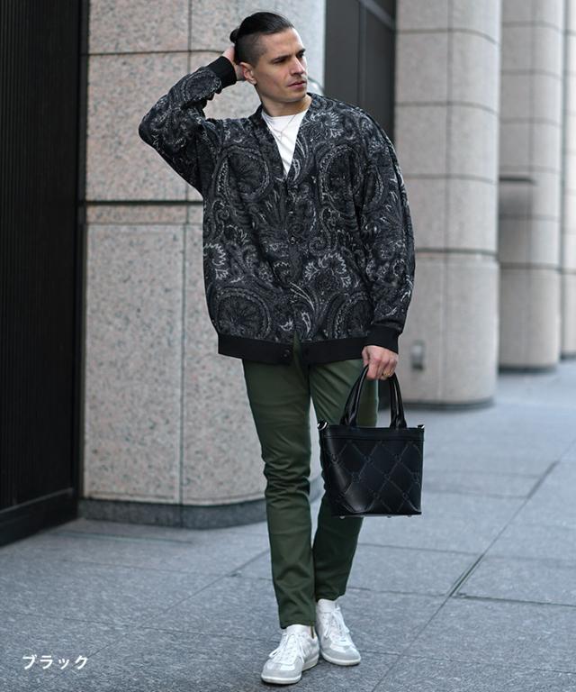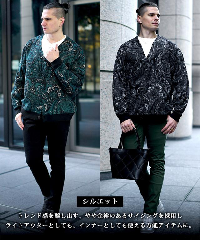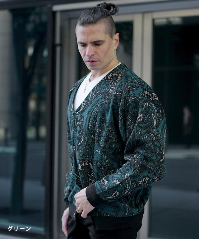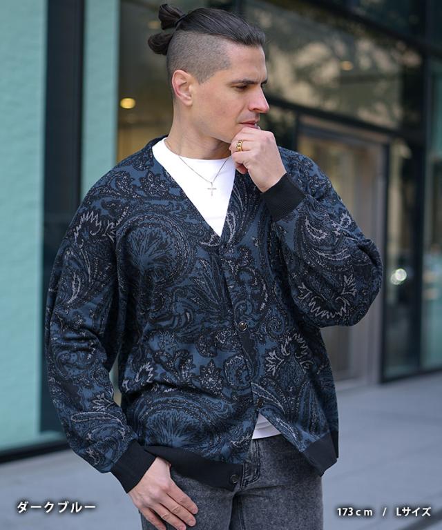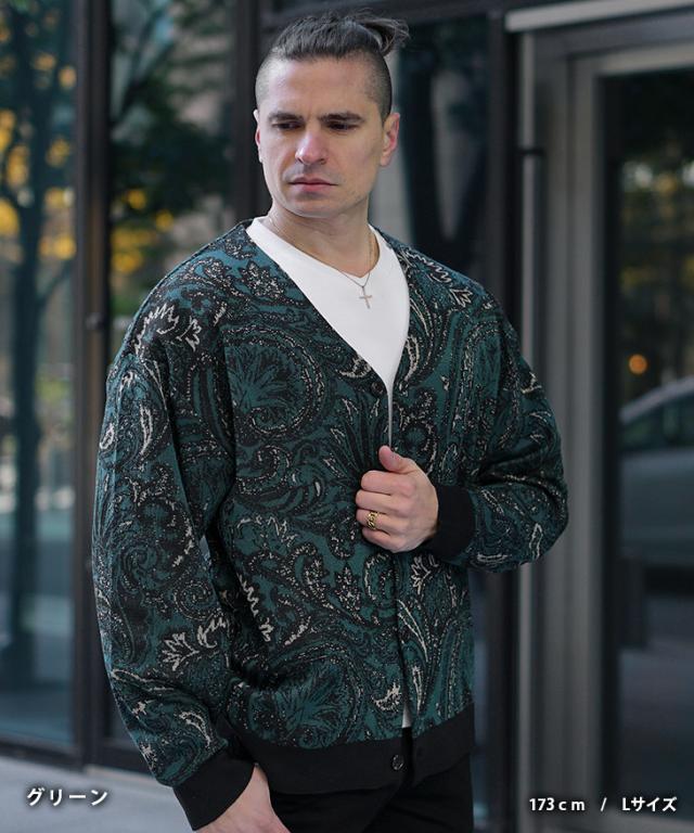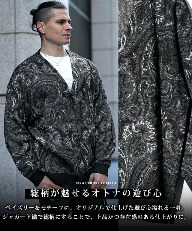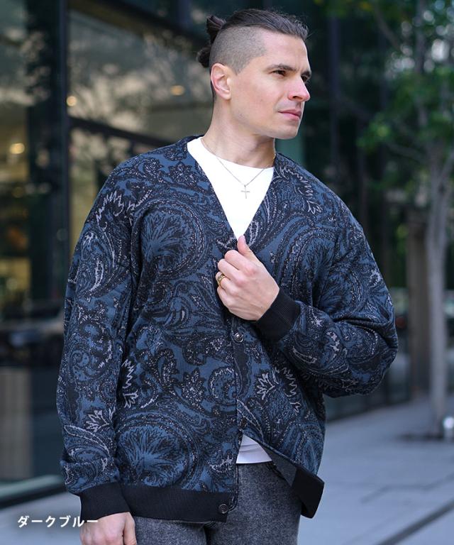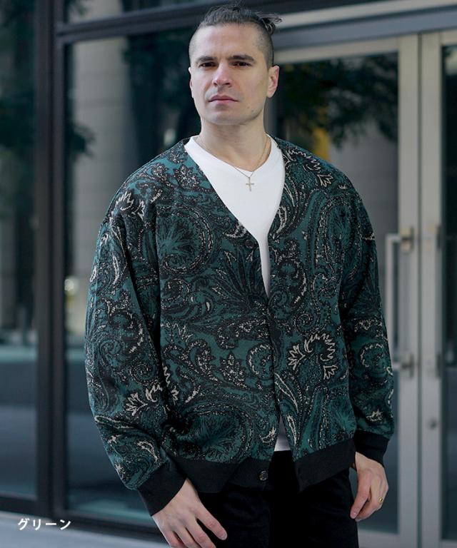 【クーポン利用で1000円OFF!】カーディガン メンズ 柄 ニットカーディガン ノーカラー ペイズリー柄 オーバーサイズ ビッグシルエット ライトアウター 薄手 総柄 ニット 黒 ブラック ブルー グリーン 春 春服 春物 joker 冬新作 新作