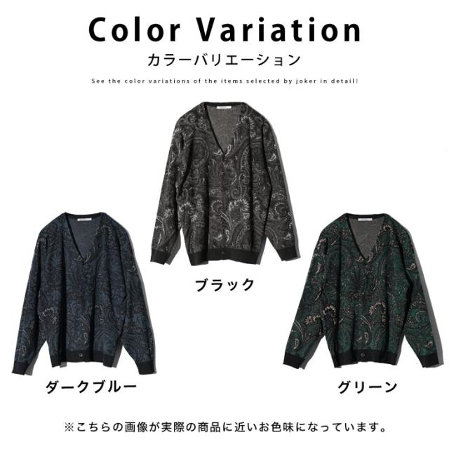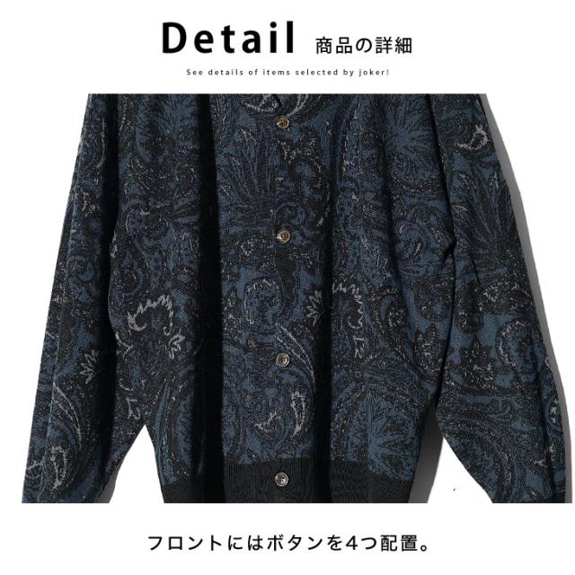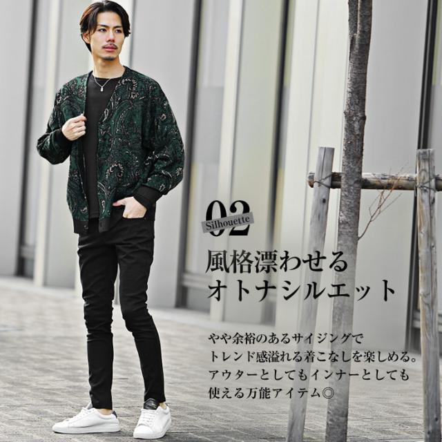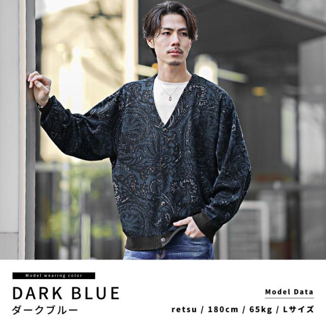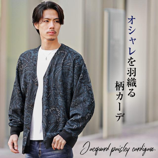 カーディガン メンズ 柄 ニットカーディガン ノーカラー ペイズリー柄 オーバーサイズ ビッグシルエット ゆったり ビッグサイズ ライトアウター 薄手 総柄 ニット カーデガン 黒 ブラック ブルー グリーン 春 春服 春物 おしゃれ カジュアル ちょいワル joker 冬新作 新作