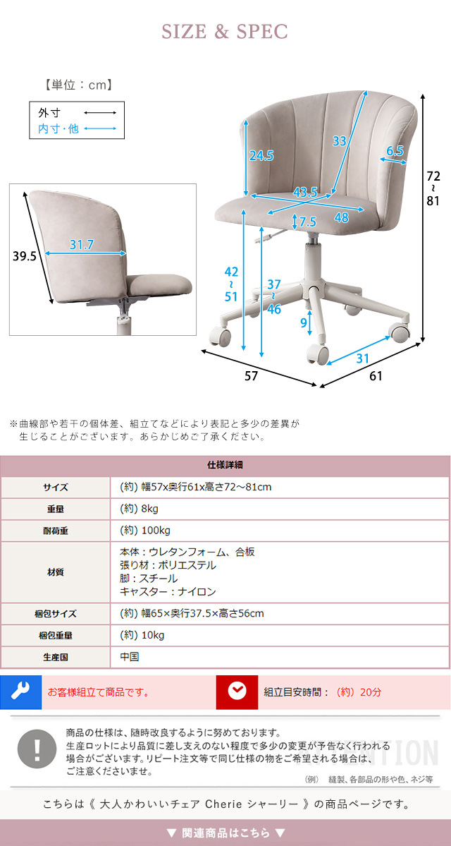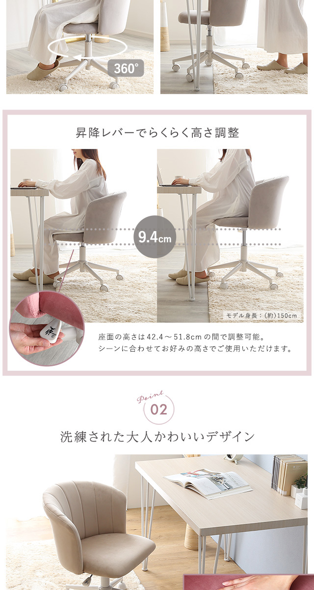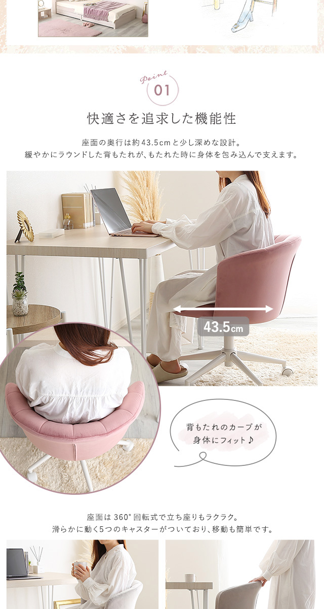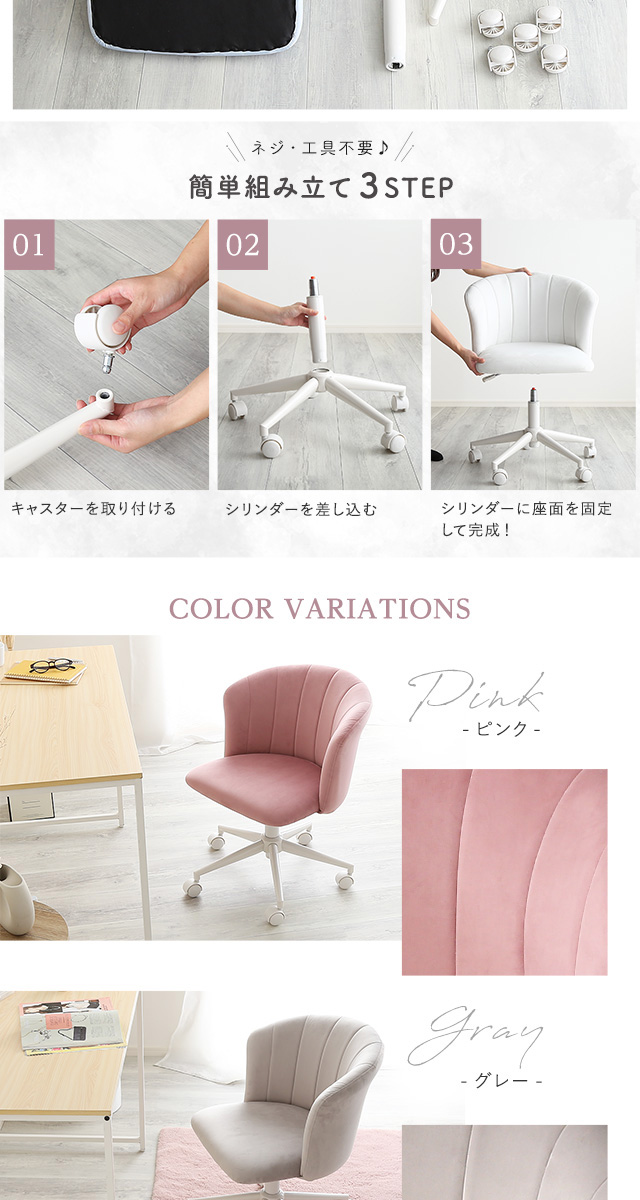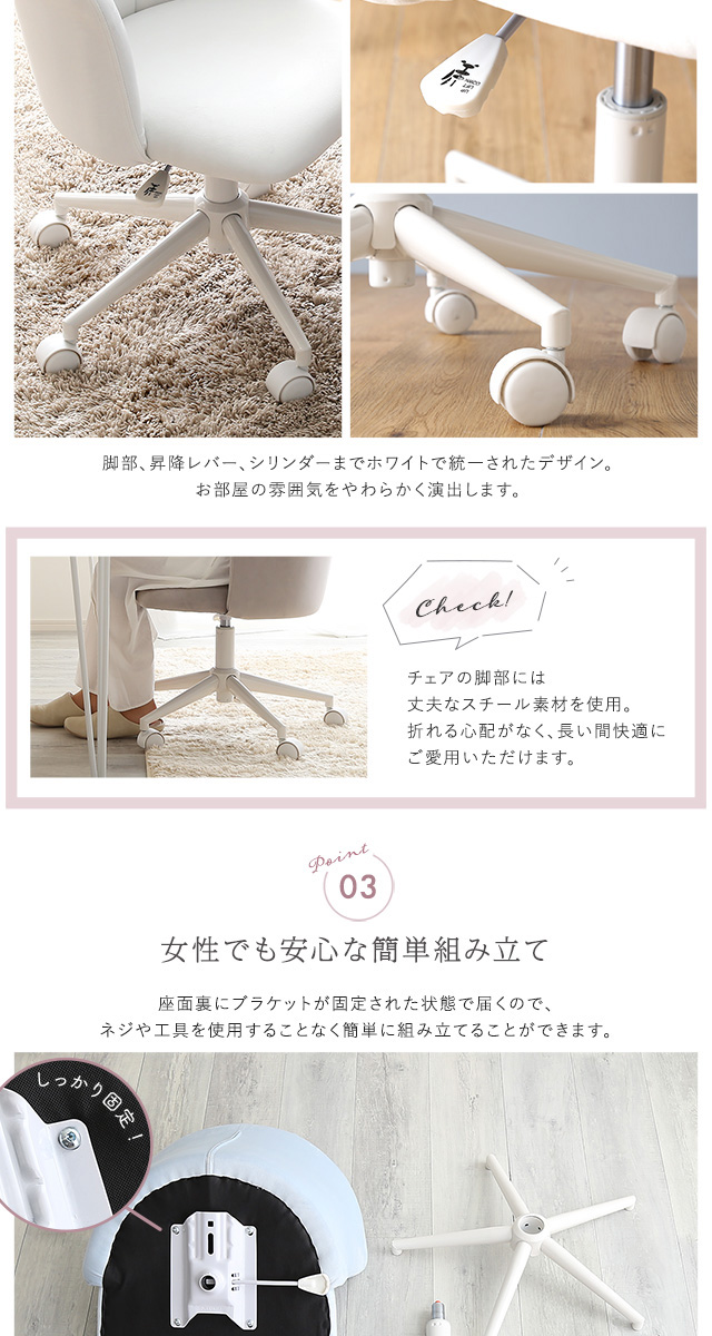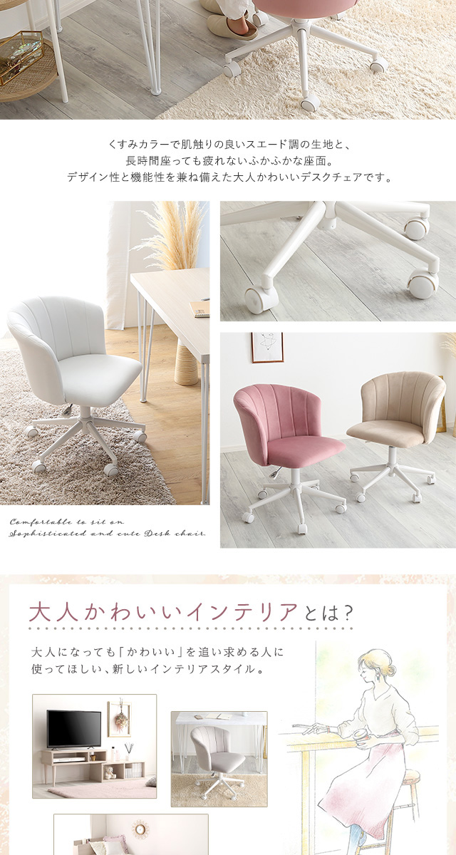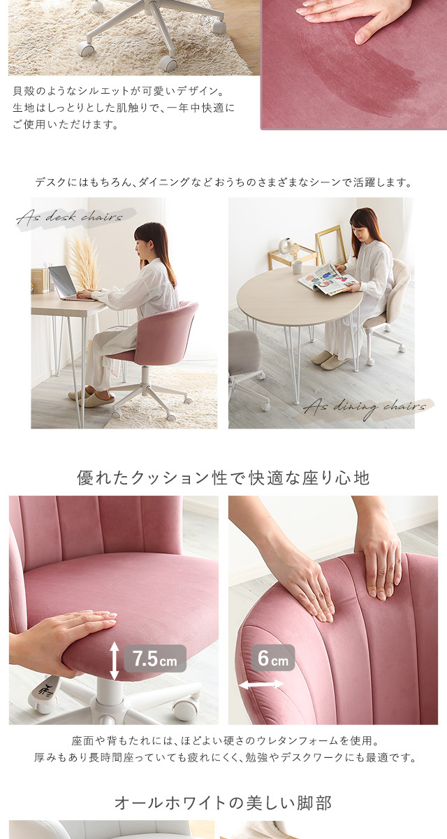 大人可愛い デスクチェア 【送料無料】 ワークチェア おしゃれ シェルチェア クッション キャスター付き ピンク ホワイト 回転 昇降 高さ調整 部屋 白 女性 女の子 事務椅子 パソコンチェア インテリア