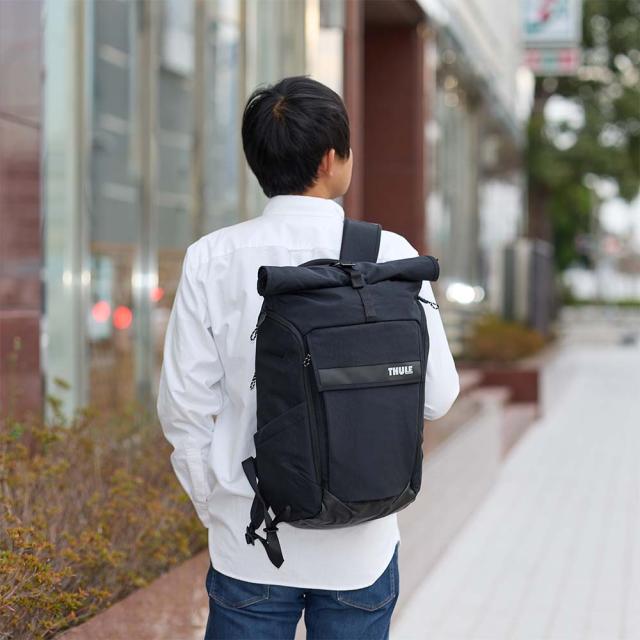 THULEのバックパック。スタイリッシュでモダンな外観に、街中を快適に移動するために必要な機能性と快適さを備えています。