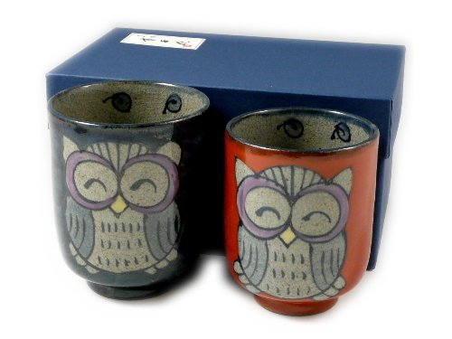 有田 波佐見焼 翔芳窯 錦フクロウ 組湯呑(夫婦湯呑) 20815
