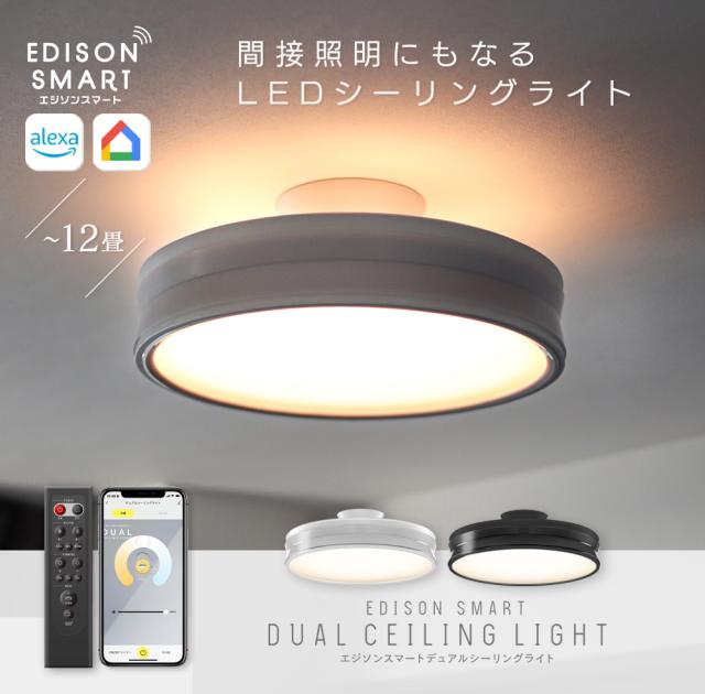 エジソンスマート デュアルシーリングライト LEDシーリングライト 調光調色 〜12畳用 明るい 間接照明 アッパーライト 天井用照明器具 モダン 北欧 おしゃれ リモコン付き Wi-Fi アプリ 音声操作 アレクサ グーグルホーム Siri スマート照明 常夜灯 タイマー agesugi_sis