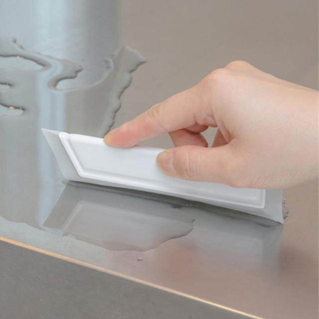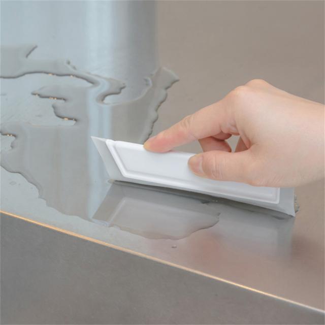 キッチンの水分や汚れ、調理中に出た野菜くず等をサッとひと拭きするだけでキレイに保てます。ゴムを清掃面に軽く押し付け、上下または左右へ一気に水を切ります。スクイージーを使用すると、調理中の手間が省けて効率良く作業を行えます。