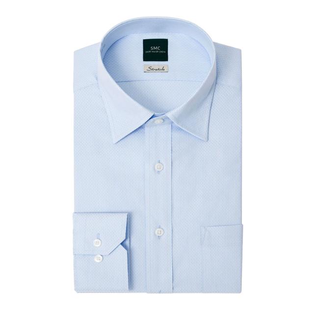 SMC Stretch 形態安定加工 春夏秋冬 SHIRT MAKER CHOYAブルードビーのショートレギュラーカラーシャツペンシルストライプ×マイクロチェックの織柄は角度によって光沢に浮かび上がります。■Stretch -ストレッチ- 動きやすい新感覚のドレスシャツバネ状の分子構造を持つ多機能なストレッチ素材を使用。皮膚が伸び縮みするような感覚のフィット感で、快適さを保ちます。