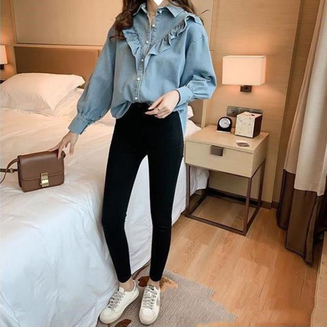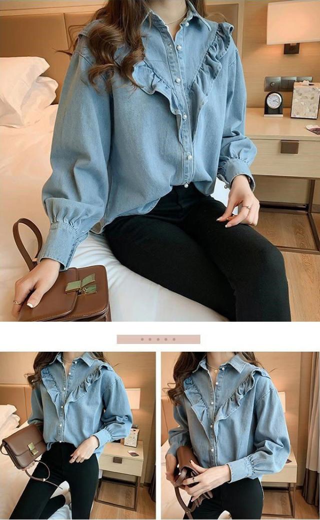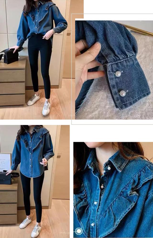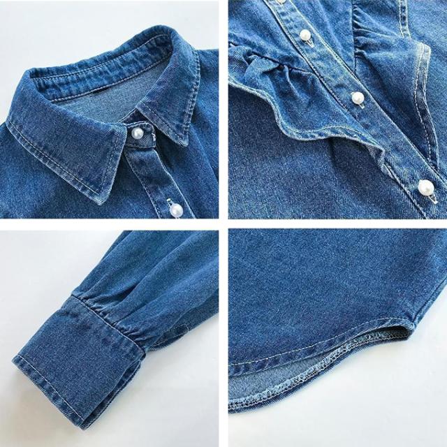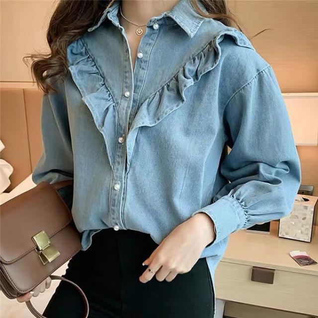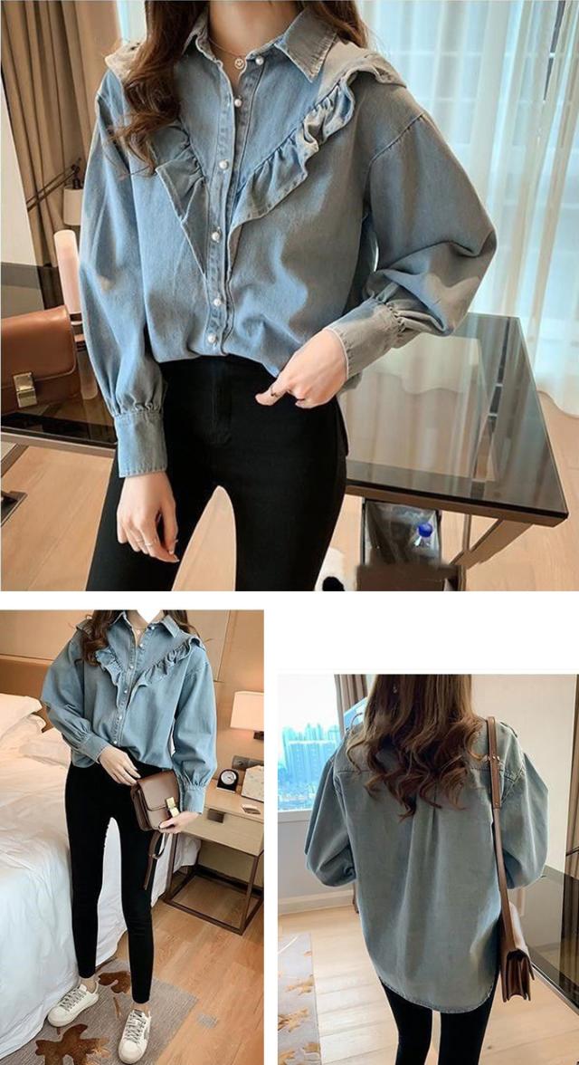 デニムシャツ ブラウス レディース きれいめ 春秋 上品 長袖デニムシャツ トップス シャツ デニム フリル 大人可愛い 韓国風 大きいサイズ カジュアル おでかけ 着まわし レトロ クラシカル 大人 ファッション 20代 30代 40代 M L XL 2XL 3XL 4XL