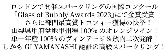 ルミエール スパークリング オランジェ 2022 高級シャンパン方式=瓶内二次発酵 金賞受賞 日本ワイン GI山梨 オレンジワイン 辛口 発泡性