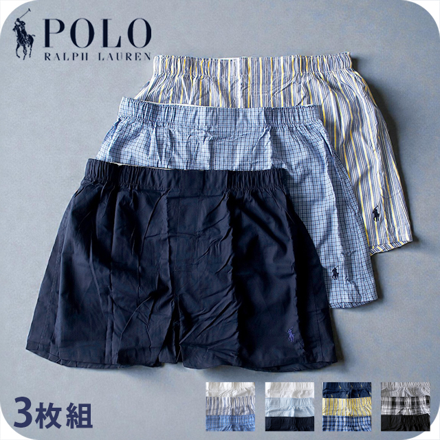 ポロ ラルフ ローレン トランクス メンズ ブランド Polo Ralph Lauren P3 Classic Fit Woven Boxer S M L 3枚セット ストライプ 下着 アンダーウェア ネイビー ストライプ チェック ホワイト ライトブルー イエロー ブラック 白 黒 選べるモデル