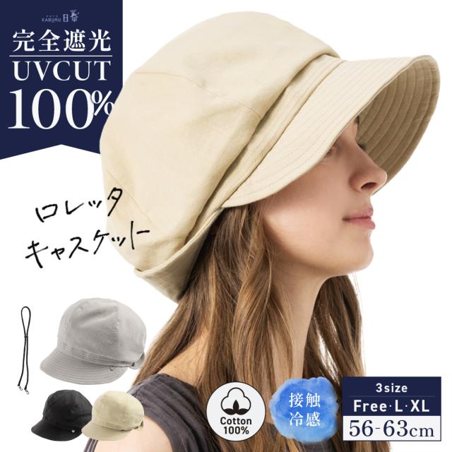 ロレッタキャスケット(234)帽子 レディース 大きいサイズ キャスケット 完全遮光 遮光100% UVカット 折りたたみ 自転車 飛ばない 日よけ かぶーる日傘 春 夏 春夏 母の日 おすすめ UV 小顔効果 あご紐