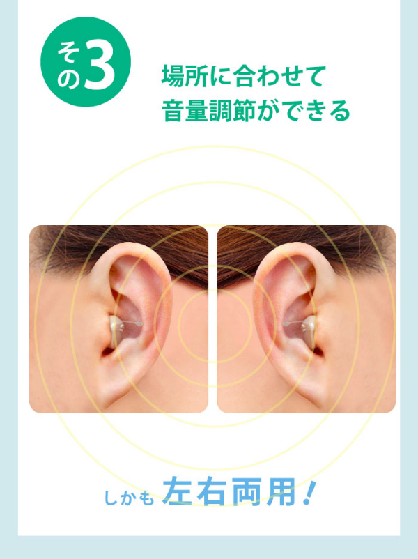 小型軽量でまったく目立たず、自然な着け心地の耳穴式集音器。小さい音が大きく聞こえる超小型集音器です。1円玉より小さく、従来品より42%軽い!耳穴にすっぽり!色もベージュで目立ちにくい。会話やTV・映画鑑賞など日常のいろんな場面で聞こえやすいから会話も弾む。●音量調節可能●左右両用●軽量●電池式●男女兼用■両耳に着ければさらに効果的!平衡感覚やバランスが良くなるので、よりクリアに聞こえやすくなります。また、音量が小さくてすむので、片耳への負担が軽減します。