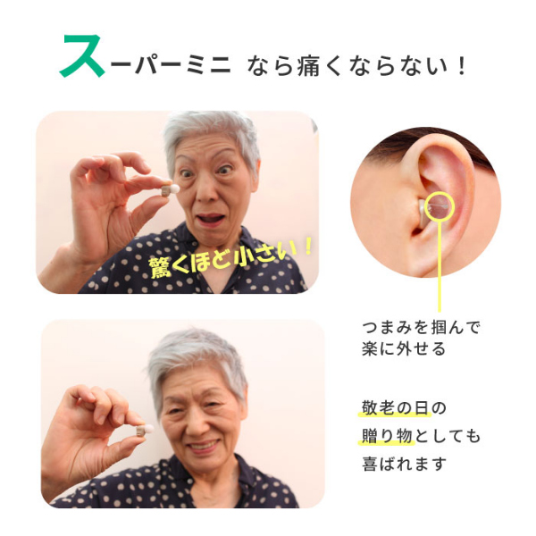 超小型集音器 スーパーミニ 片耳1個 耳穴式 耳あな式 電池式 集音機 耳穴式集音器 電池式集音器 耳 音 声 両耳対応 左右両用 小型 軽量 介護 母の日 父の日 敬老の日 シニア 誕生日 プレゼント ギフト