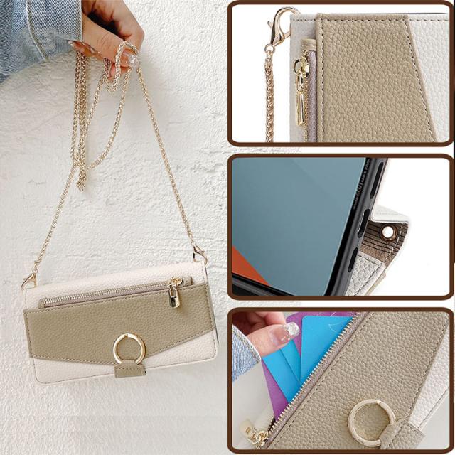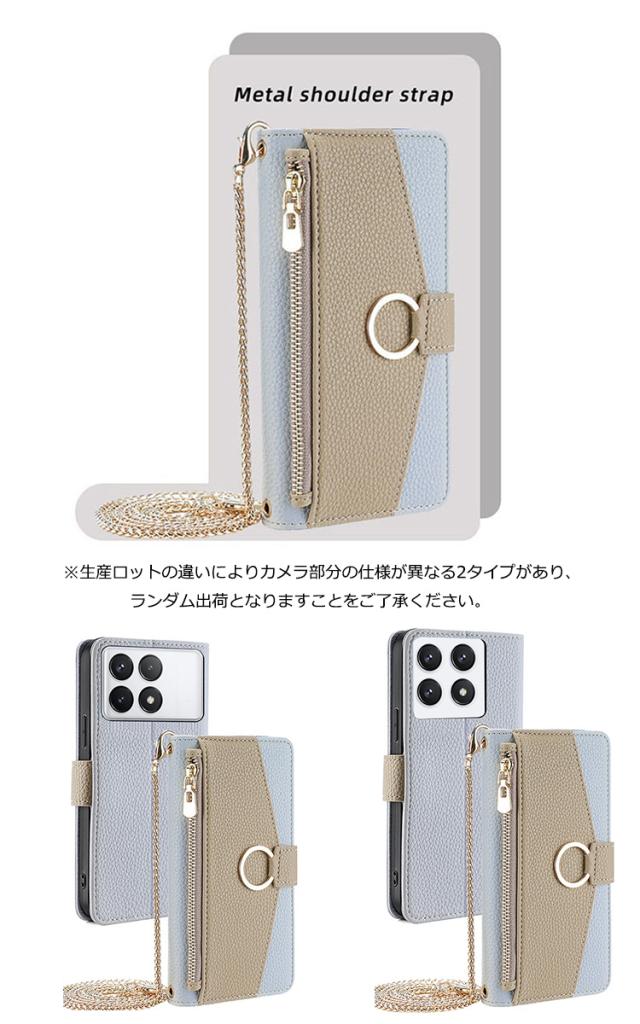 POCO X6 pro ケース スマホショルダー カバー 手帳型 PUレザー 紐 ファスナー付きポケット リング付き ミラー付き カード収納 落下防止 ショルダー 肩掛けベルト付き エレガント 小米 シャオミ Xiaomi POCO X6 プロ おすすめ スマフォ スマホ スマートフォンケース/カバー
