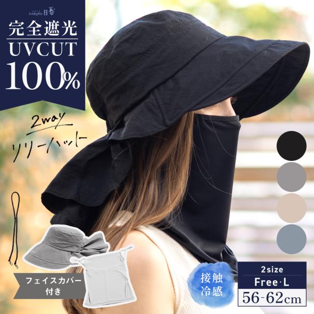 リリーハット(238)帽子 レディース 大きいサイズ 完全遮光 遮光100% UVカット つば広 折りたたみ 自転車 飛ばない 日よけ かぶる日傘 春 夏 春夏 ガーデニング 母の日 おすすめ UV 帽子 あご紐 フェイスカバー