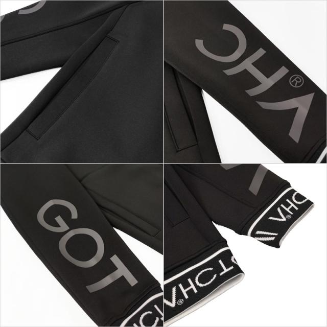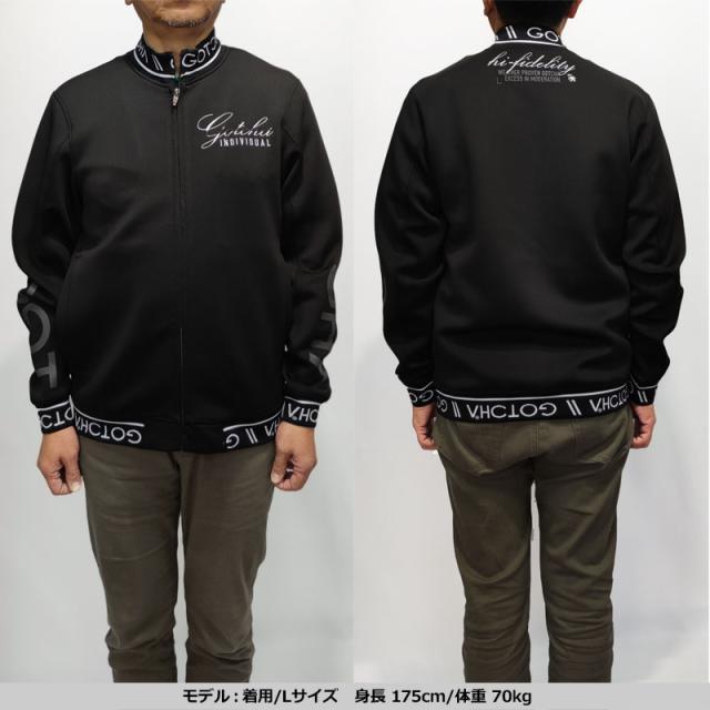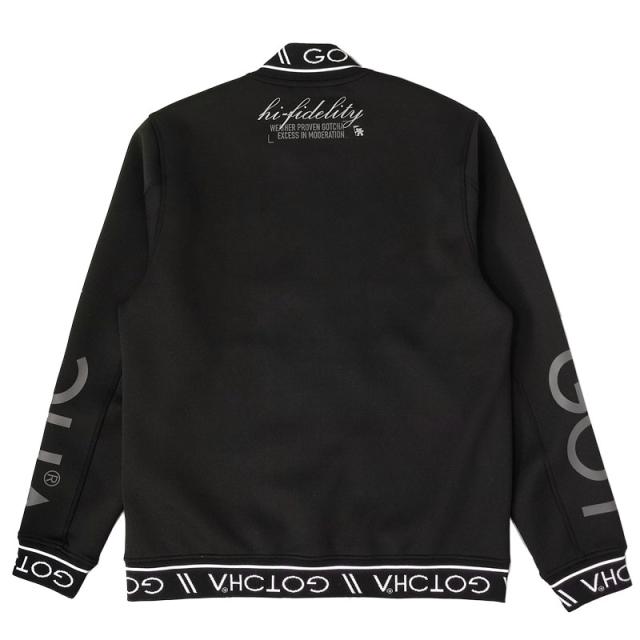 スタンド襟や裾、袖口のジャガードロゴがポイント。