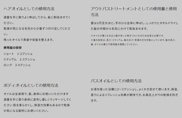 | 区分 | 化粧品、コスメ > ヘアケア > 洗い流さないトリートメント(フレグランス) 化粧品、コスメ > ボディケア > オイル 化粧品、コスメ > ネイルケア > オイル |