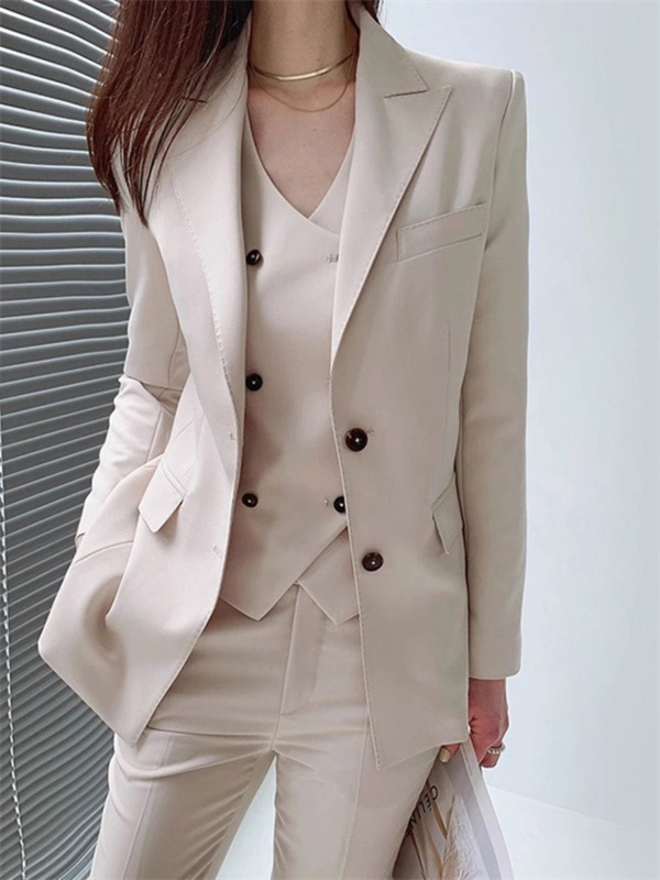 ◎デザイン力のあるジャケットなので、ウエストラインが細見えて、エレガントで女性らしいイメージへ。