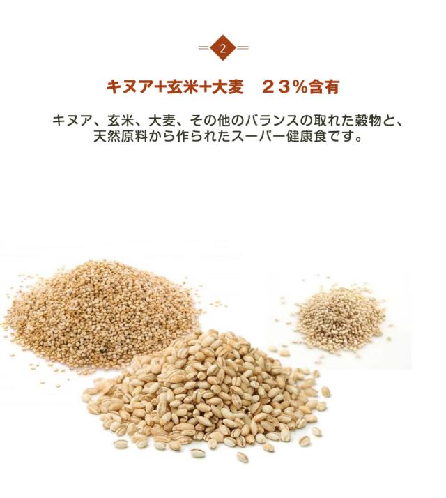 キヌア、玄米、大麦、その他のバランスの取れた穀物と、天然原料から作られたスーパー健康食です。