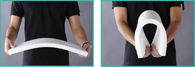 耐久性に優れ、高い衝撃吸収力を持つ発泡ポリエチレンを使用。曲げても折れることはなく、へたりにくいこの素材だからこそクッションとしての絶妙な硬さを表現することができました。