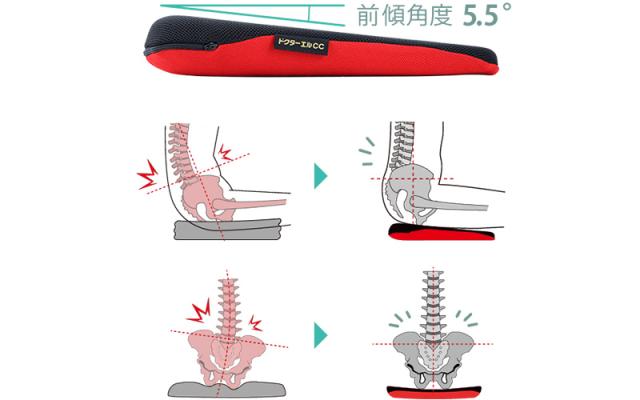 絶妙な硬さの素材に角度をつけることで自然に骨盤が立ち、姿勢が良くなります。それにより座っている時の腰への負担を軽減します。