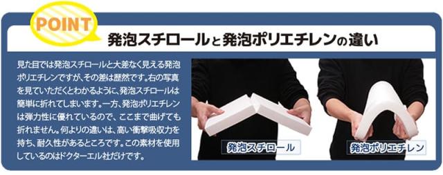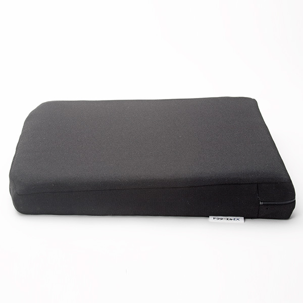 角度を設けることによって、座った時に骨盤を立たせ、姿勢を自然に整えます。また絶妙な硬さで左右の坐骨を安定させ上半身を支えます。正しい姿勢こそ、健康を維持し、長時間の座りを可能にする基本です。従来のドクターエルクッションの前傾角度は6度ですが、EXでは長時間の座りを前提にウレタンの反発特性を考慮し3度に変更しました。硬さと弾力性・耐久性に優れた発泡ポリエチレンを使用しております。