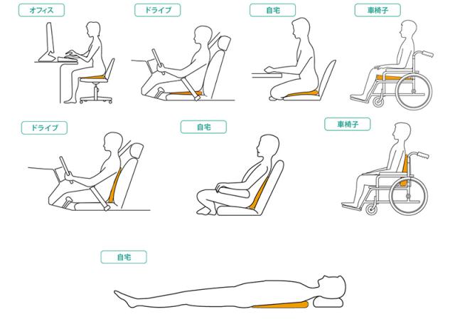 往来の座布団とは違い、自然に姿勢を正して腰の負担を減らるから、長時間座ることができます。