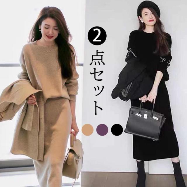 ニット セットアップ レディース 40代 秋冬 長袖 ニットトップス ニットタイトスカート 無地セーター オシャレワンピース 着痩せ 上品 入学式 卒業式