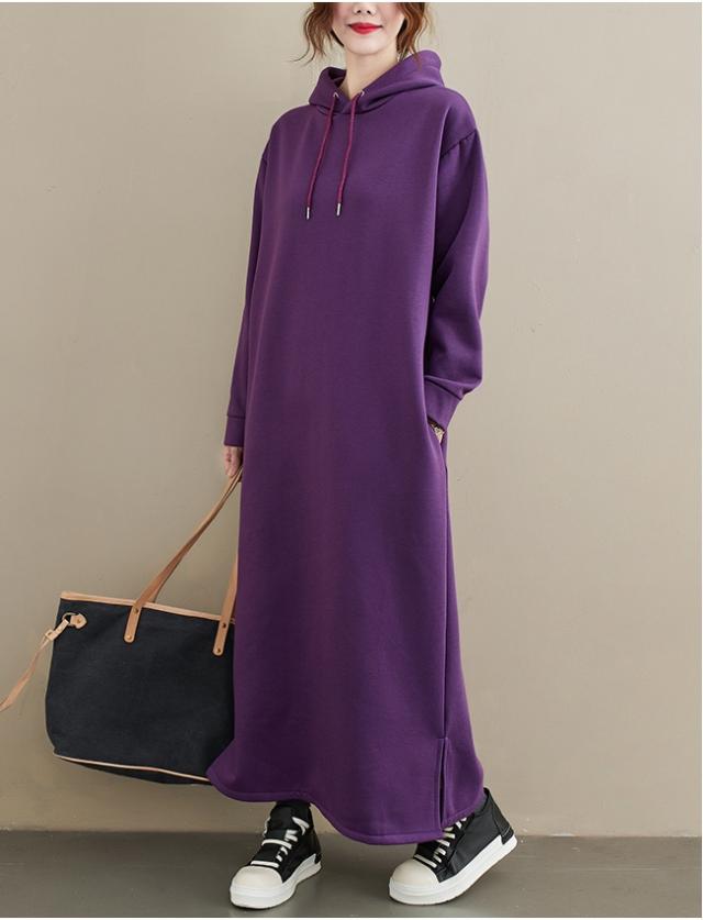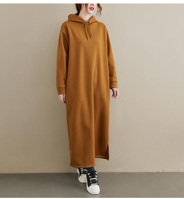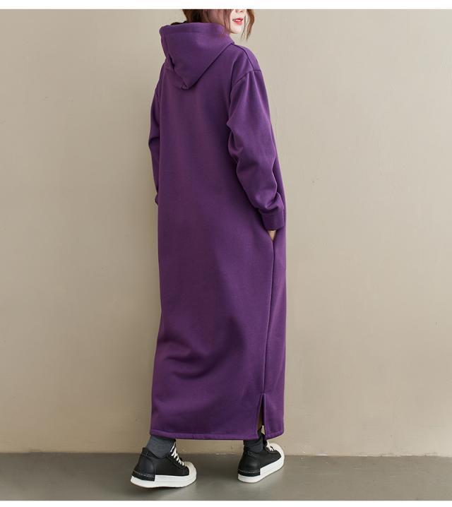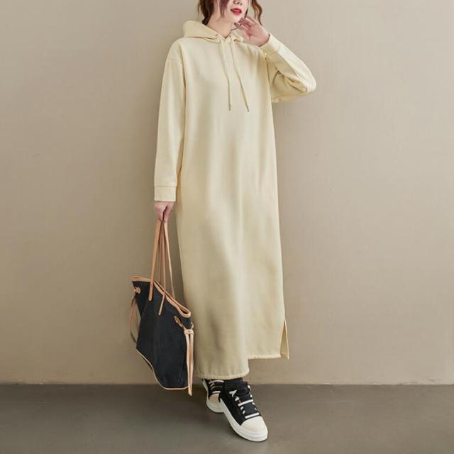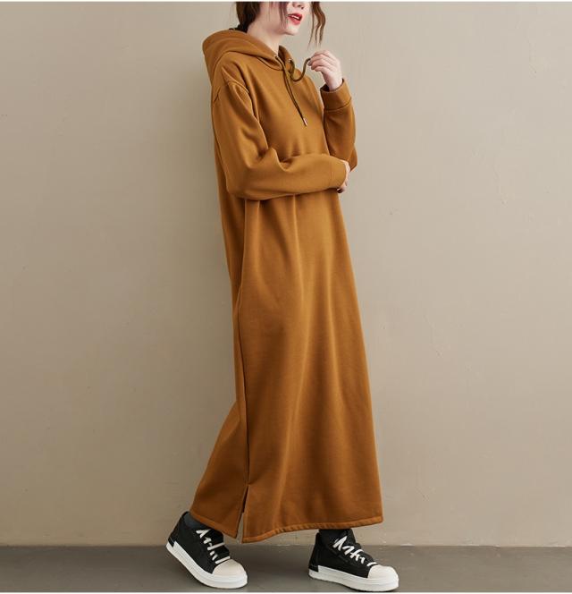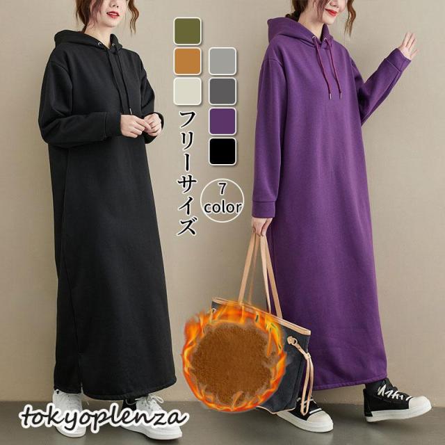 パーカーワンピース 裏ボア レディース 秋 長袖 ロング丈ワンピー フード付き Aライン 無地 体型カバー カジュアル シンプル 大人 秋冬服