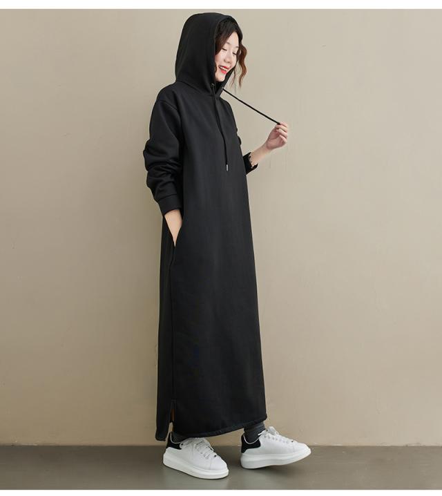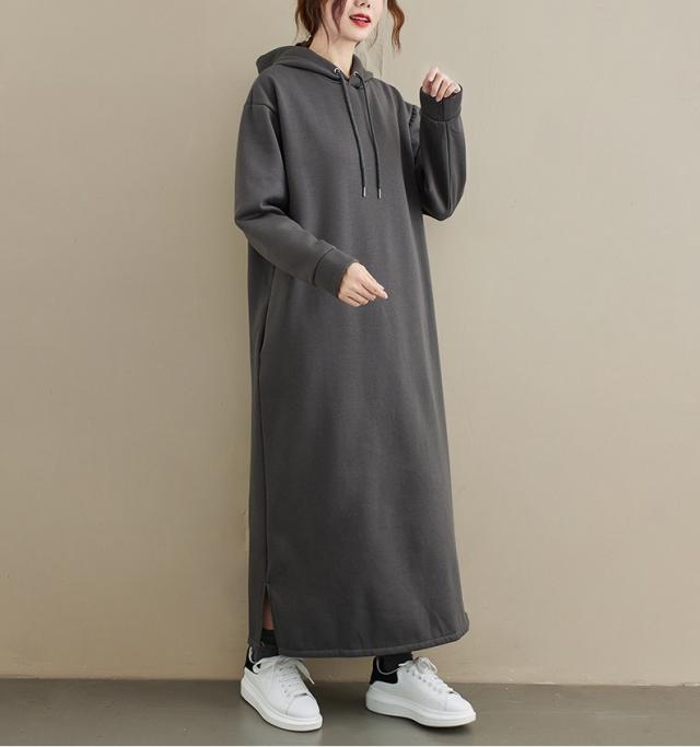ワンピース ロングワンピース 長袖 スウェットパーカーワンピース 体型カバー レディース 無地 春 秋 冬 大きいサイズ シンプル 20代 30代 40代 黒ワンピース グレーワンピ ロングパーカー レディース トレーナー 秋服 aラインワンピース 秋定番アイテム 裏ボア