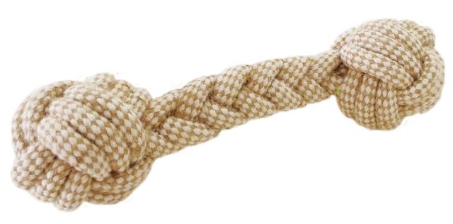 繊維が細く、やわらかい麻とコットンを一緒に編み込んで玩具にしました。ガジガジと噛むことで、編みこんだロープがデンタル効果を促します。素材特有の繊維質が、遊びながら愛犬の歯磨きをお手伝いします。