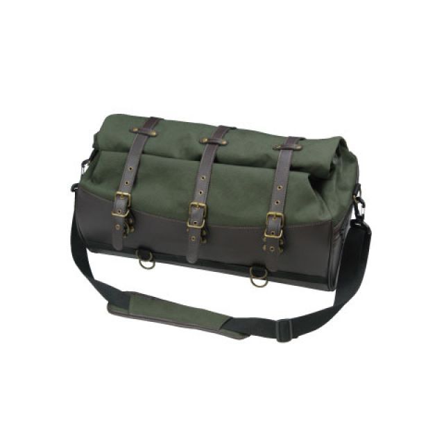 レインカバー、ショルダーベルト、積載ベルトを装備した、雨降ってよし、降りてよし、積んでよしなバイク乗りのためのダッフルバッグ。