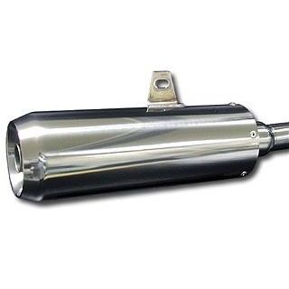 迫力のあるサイレンサータイプのドラッグバイソンタイプを採用した、インパクトがあり存在感抜群のマフラーの誕生です。音量、音質も腹の底に響くような重低音で、とても迫力あるサウンドです。(爆音ではありません。町中でも安心して走行できる音です。)サイレンサーはリベットを使用している為、グラスウールの交換が可能です。性能面ですが、トルクフルで低回転から高回転までスムーズに吹け上がり、ノーマルでは物足りない方にはお勧めです。確実にノーマルよりパワーアップを感じられうと思います。ルックス、サウンド、走行性能の全てのバランスがとれたマフラーです。
