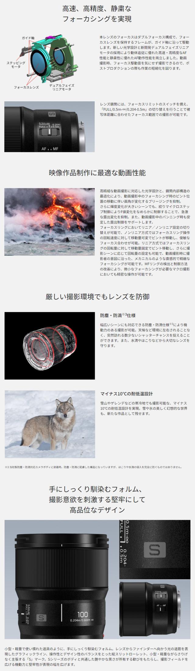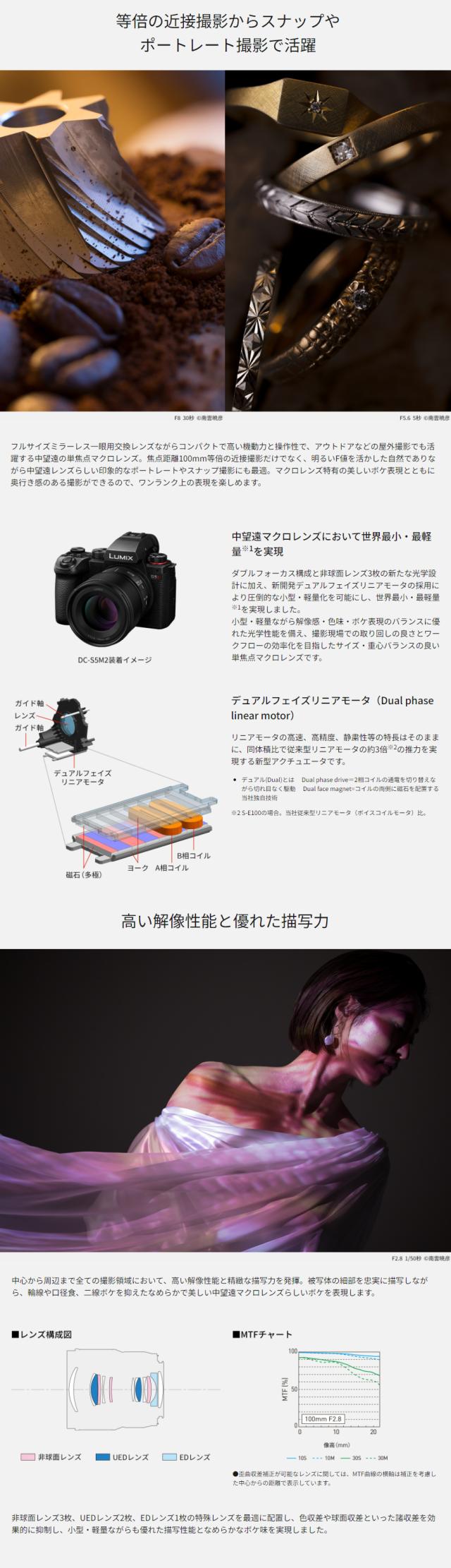 S-E100 中望遠単焦点マクロレンズ Lマウント用 LUMIX S 100 mm F2.8 MACRO