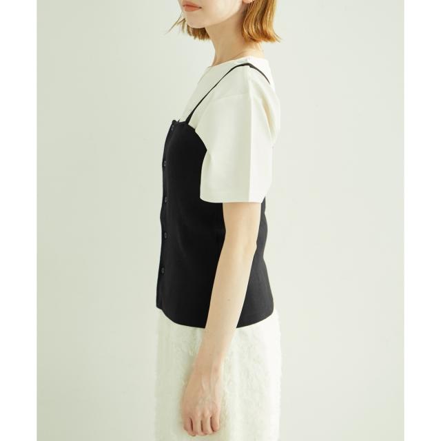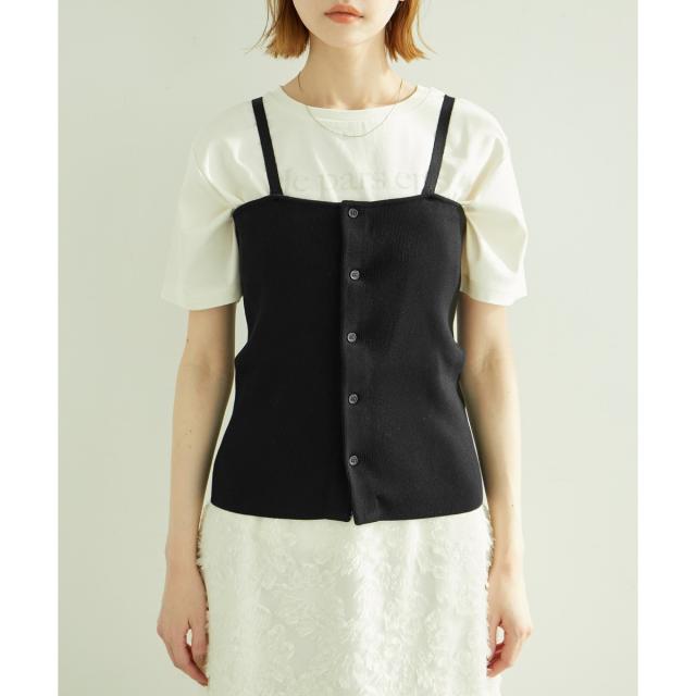 ・フロントがボタン開きになった、ニットビスチェ