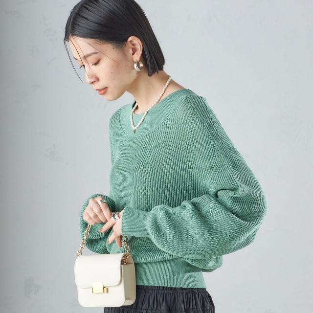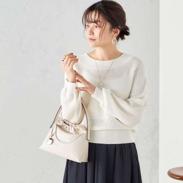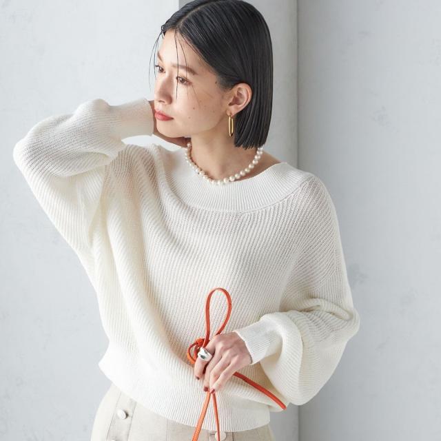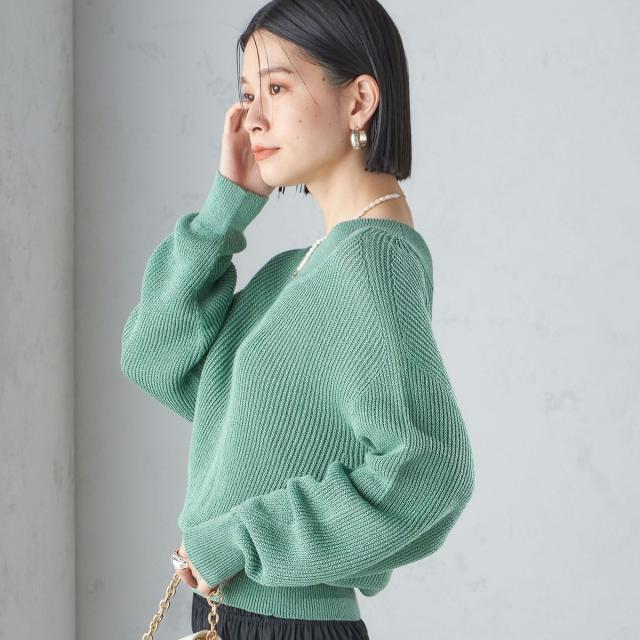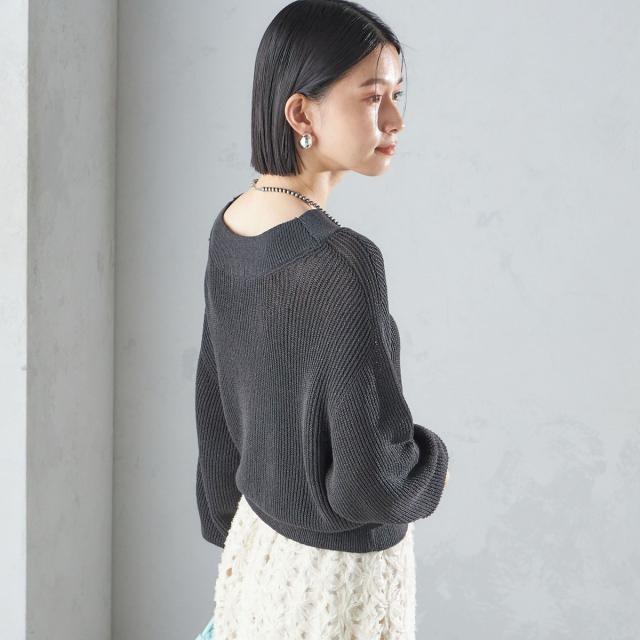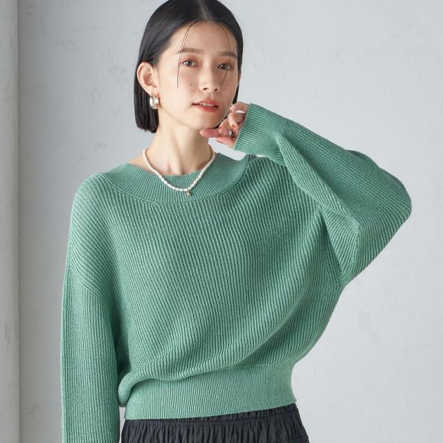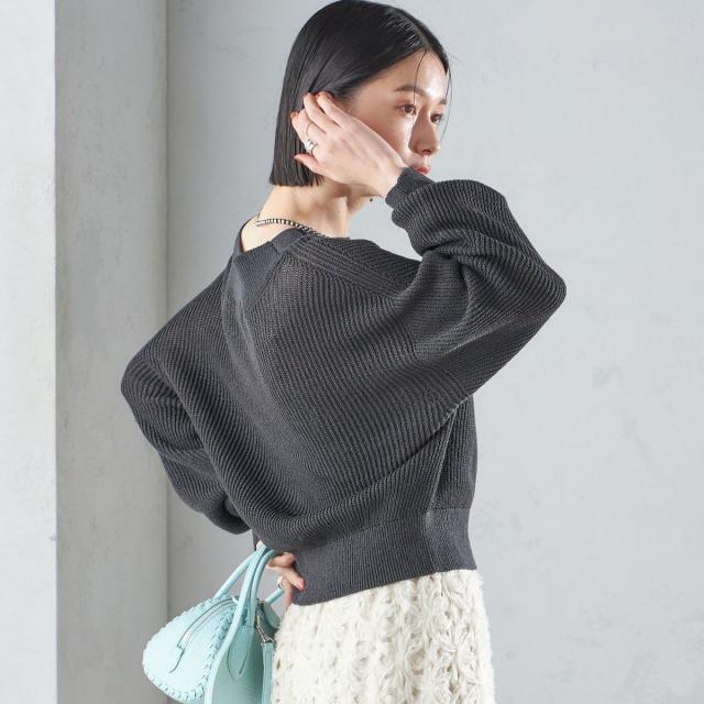 ゆったりとした身幅とショート丈で、バランスのとりやすい形の畦編みプルオーバー。