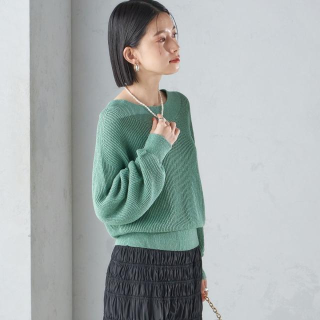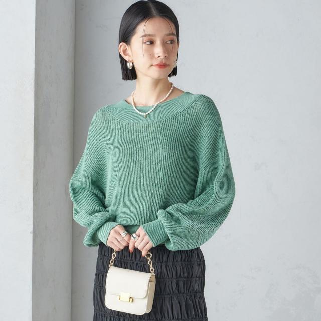 太めの襟で抜け感のある襟ぐりと、ボリューム袖のシルエットがデザインポイントです。
