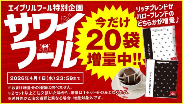 | 内容量 | ・リッチブレンド 8g×30袋 ・ハローブレンド 8g×20袋 |