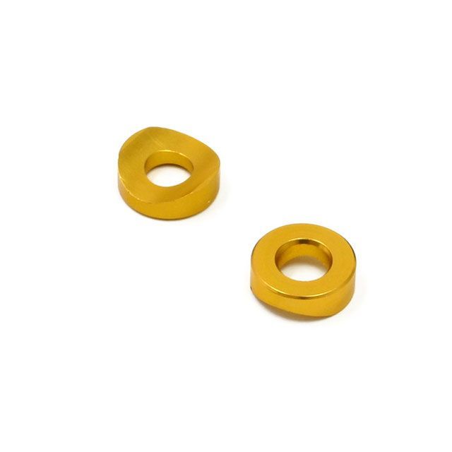 リムの曲面に合わせたビートストッパー専用スペーサー。標準のスプリングワッシャーに比べ面に固定するため確実な締め付けが可能。