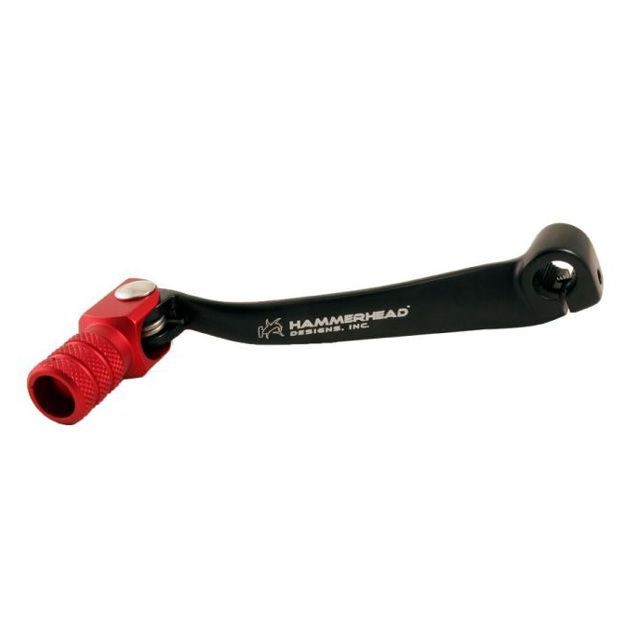 Hammerhead(以下ハマーヘッド)シフトペダルは、転倒時の破損を防ぐために、アルミ削り出しの可倒式ヘッドと、ブラックアノダイズド処理によるアルミ鍛造のアームを導入。