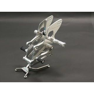 アルミA2017材総削り出しながらシンプルでコストを追求したレーシングステップKIT。50mmBack/50mmUpのポジションは、2011年モテ耐でネオスタンダードをクラス優勝したポジション。ヒールガードまでを一体で削り出されたステッププレートは走りに集中できる邪魔な物の一切無いシンプルな構造で、剛性のバランスを追求。リターンスプリング、ブレーキスイッチ装着可能でストリートにまで対応。別売の逆チェンジキットで逆チェンジも可能です。
