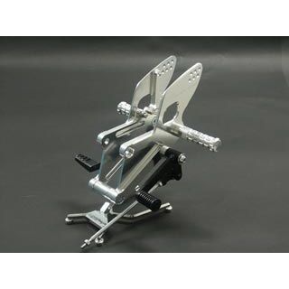アルミA2017材総削り出しながらシンプルでコストを追求したレーシングステップKIT。50mmBack/50mmUpのポジションは、2011年モテ耐でネオスタンダードをクラス優勝したポジション。ヒールガードまでを一体で削り出されたステッププレートは走りに集中できる邪魔な物の一切無いシンプルな構造で、剛性のバランスを追求。リターンスプリング、ブレーキスイッチ装着可能でストリートにまで対応。別売の逆チェンジキットで逆チェンジも可能です。