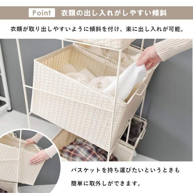 バスケットが斜めになっているので衣類を入れやすい構造です。