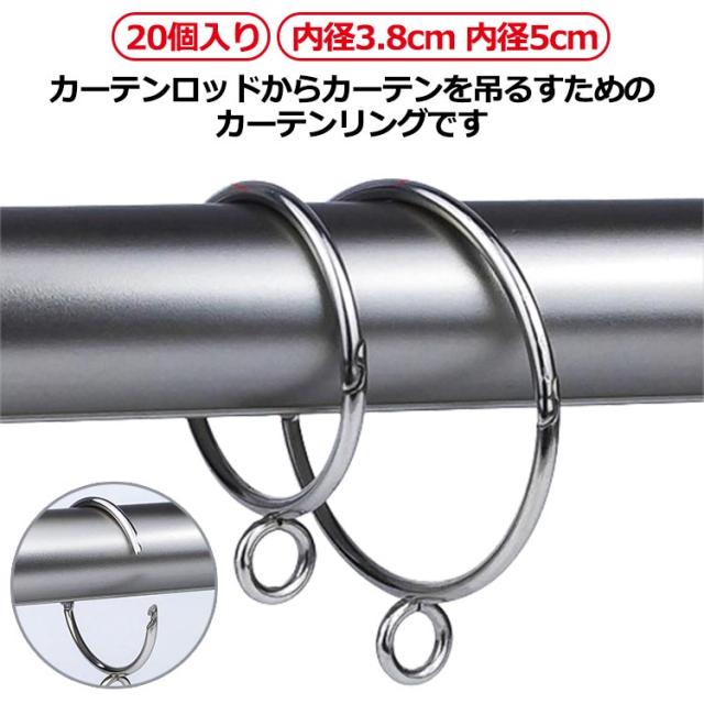 カーテンリングフック 20個入り 内径3.8cm 20個入り 内径5cm 開口設計 固定 しっかり カフェカーテン カーテンフック 金属製 簡単取付 防錆 ドレープリング スライドリング