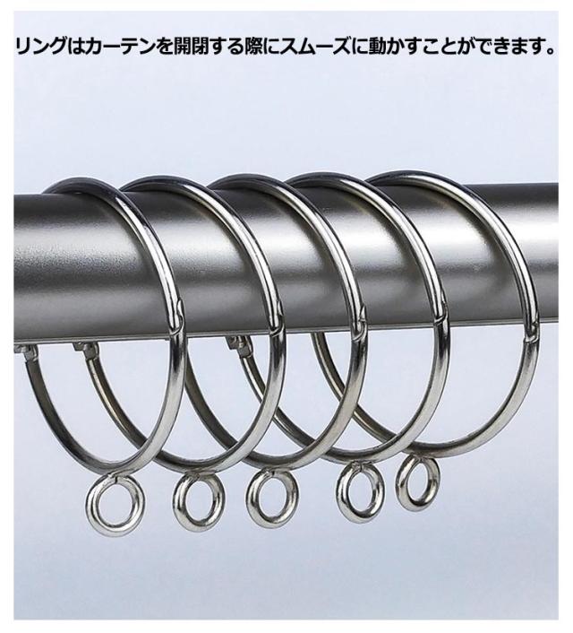 | カーテンロッドからカーテンを吊るすためのカーテンリングです。 リングを開けてから、カーテンループを入れて、結んでだけでいいです。 リングは開口設計なので、レールや突っ張り棒を外す必要はない。 2サイズ展開、内径50mm以内の伸縮カーテン棒・突っ張り棒などに適用。 丈夫なので、カーテンの上端にしっかりと取り付けられます。 リングはカーテンを開閉する際にスムーズに動かすことができます。 錆にくくて長期的に光沢を保つことができます。 | |