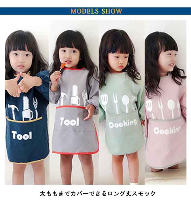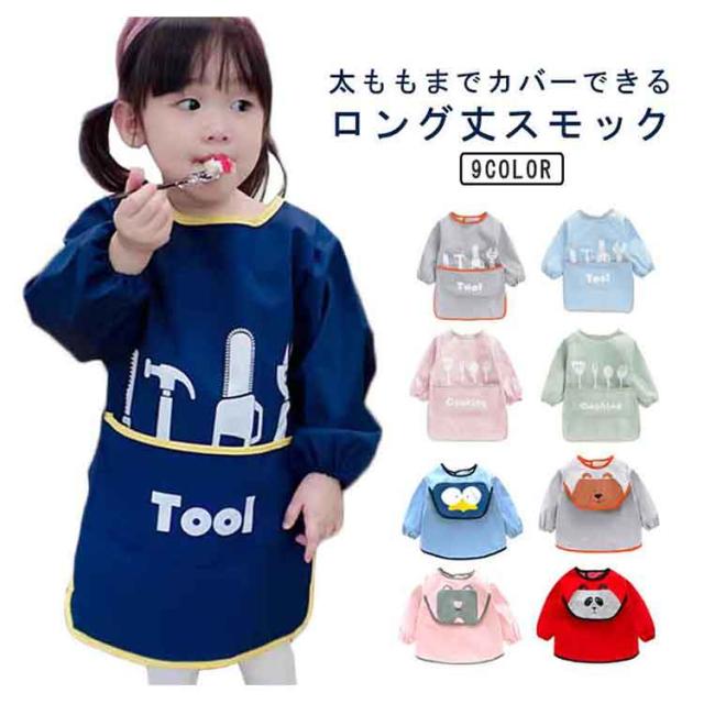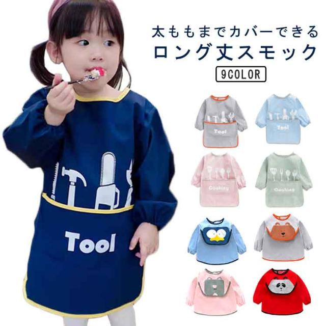 汚れ防止 長袖スモック 子ども 外遊び ロング丈スモック キッズ 男の子 お食事エプロン 女の子 防水 ロング ポケットつき 食べこぼし防止 ベビー 保育園 幼稚園 スタイ 長袖 入園グッズ 入園準備 ロング丈スモック よだれかけ