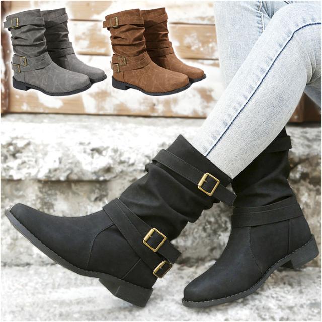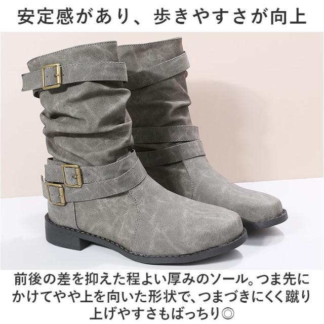 ショートブーツ レディース ショート 通販 ブーツ ワークブーツ ミドルブーツ ローヒール レディースブーツ 歩きやすい 疲れにくい 履きやすい 幅広 ワイド くしゅくしゅ 履き口