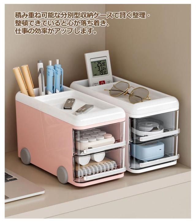 卓上収納ボックス 整理 引き出し 小物ケース 収納 収納ケース 卓上小物ボックス 小物収納 卓上 2段 オフィス 机上ラック 整頓 省スペース デスク収納 雑貨 書類 文房具 化粧品 机上用 卓上収納ボックス 収納用品 ホワイト ピンク ブルー レッド