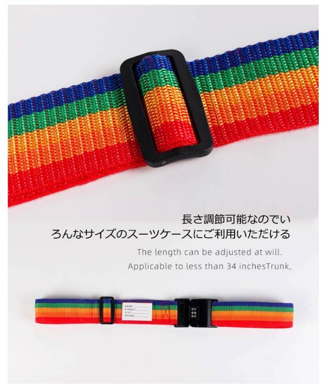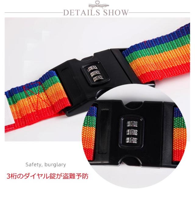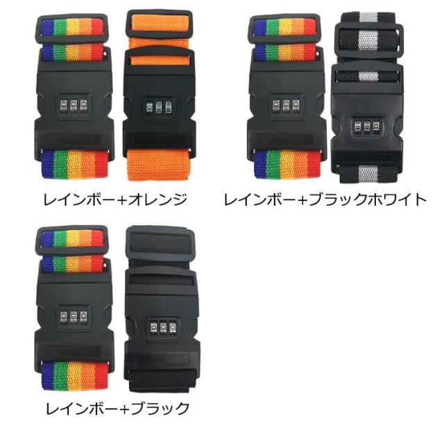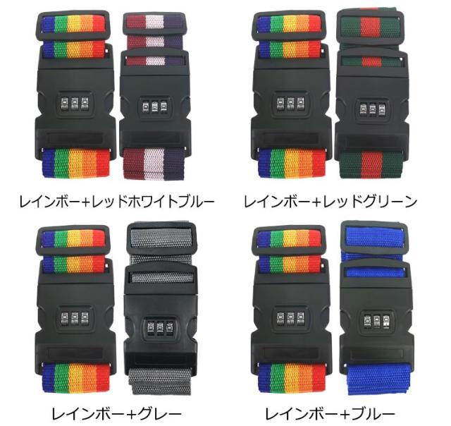 虹色 ベルト スーツケース 鍵付き レインボー スーツケースベルト ダイヤルロック式スーツケースベルト ワンタッチ式 ダイヤルロック式 2本 バンド バンド ロック付き 旅行 防犯 レインボー 出張 旅行 盗難防止 国内 海外 スーツケースベルト トラベル 荷物 梱包 防犯